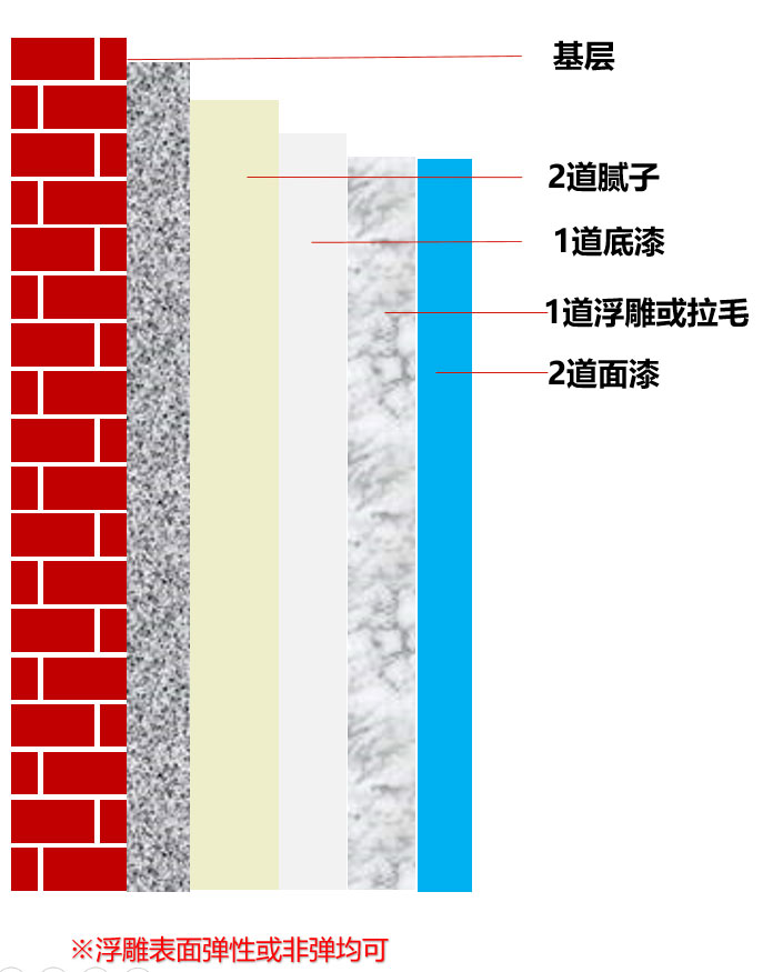 特殊改性的丙烯酸類(lèi)中層料,能為墻體提供立體裝飾效果。