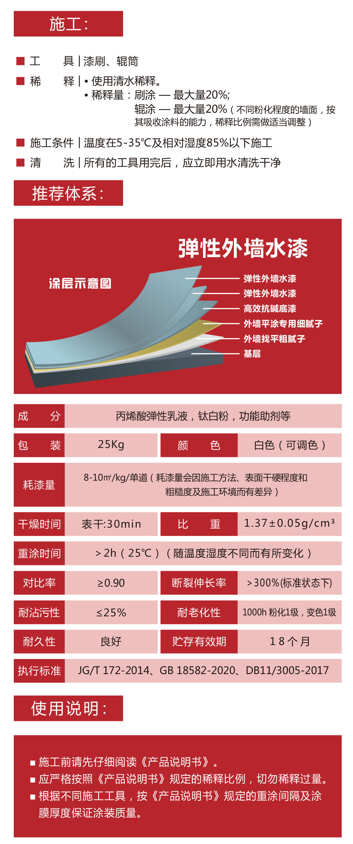 彈性外墻水漆是一款丙烯酸彈性外墻面漆,具有防水、抗裂縫及耐雨痕等功能。